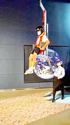 宇宙トレーナーとムーンウォーク体験です。ぐりんぐりん回ったり、びょーんびょーんと跳ねたりしました。