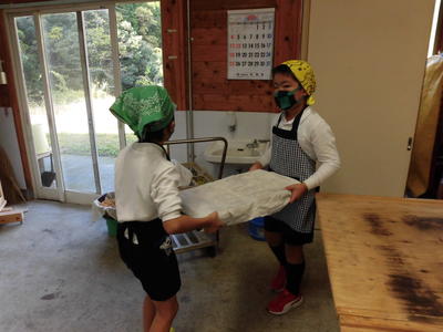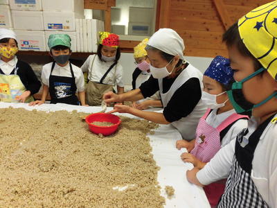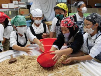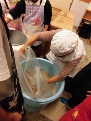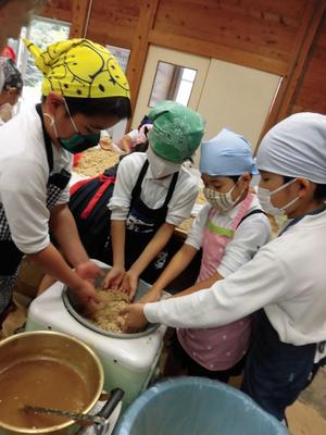 17日と今日、3年生が福連木のかしの木館で、味噌造り体験をさせてもらいました。