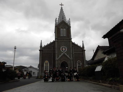 最後に大江教会へ。白亜の美しい建物です。ちなみに、ロマネスク建築。シスターがお話を聞かせてくれました。