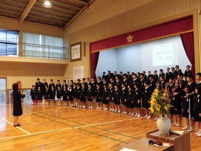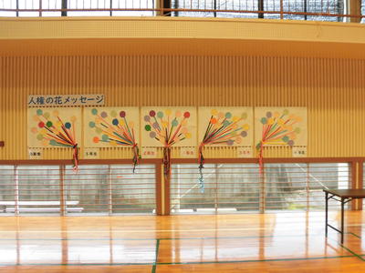 修学旅行団は昨日、全員無事元気に帰ってきました。本日も1時間目からの体育館での「人権の花運動 発表会」の練習に疲れを見せることなく参加することができました。