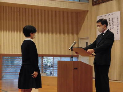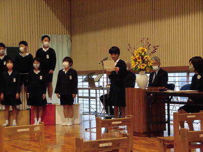 昨日17:30から、平和学習として田中安二郎さんの講話がありました。子供達は改めてこれからどう生きるべきかを考えることができました。お礼に髙見心陽さんの言葉に加え、「♪青い空は」を合唱しました。