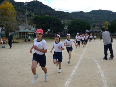 風が冷たい一日でしたが、子どもたちは頑張って走り抜きました。持久走を頑張ると体も心も強くなります。練習を見守ってくれた地域の方々、警察の方、準備や見守りをしていただいた保護者の皆様、応援してくれた保護者の皆様、おかげさまで無事終えることができました。ありがとうございました。