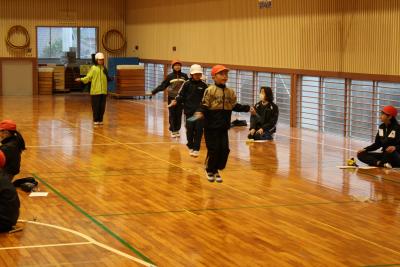 2,3時間目はなわとび大会でした。今日は冷え込んだため、1,2,6年と3,4,5年とに分けて体育館で行いました。