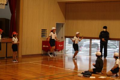 八の字跳びで2位になって悔しがっていると、3年生の児童が「次あるからまたがんばればいいですよ。」と言ってくれました。上学年が下学年の背中をちょっと押して入れてやったり、「はい、はい」とかけ声をかけてくれたり、そうしているうちにできるようになって、学年を超えて力を合わせる素晴らしい姿がありました。朝からいい気持ちでした。