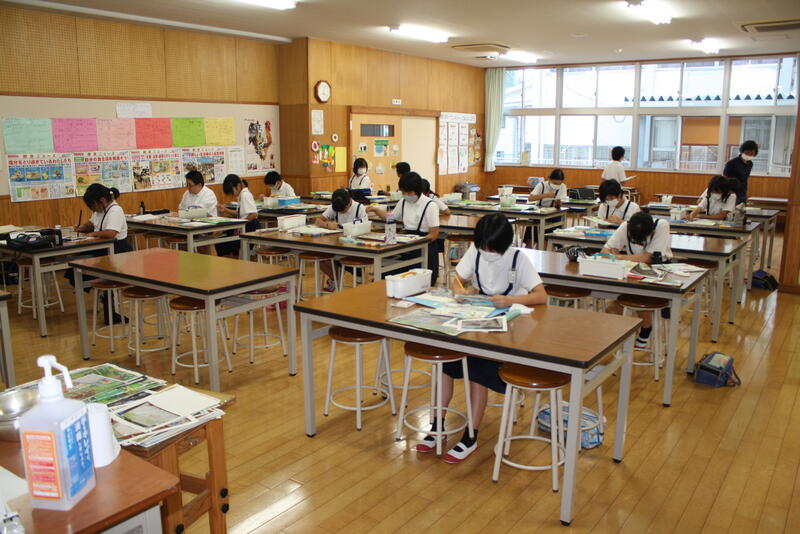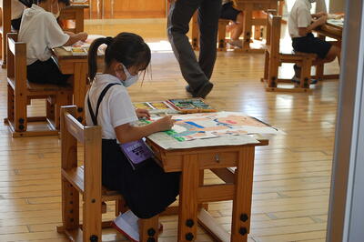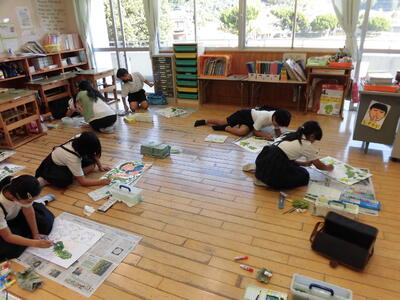 6時間目から放課後にかけ、5・6年生はランチルームで描画に取り組みました。仕上げに入っている人も多く、最後まで集中して完成させて欲しいと思います。