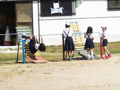 人数が少ないことや、男女の人数の偏りがあることもあって、1・2年生は合同体育を行うことも多くあります。