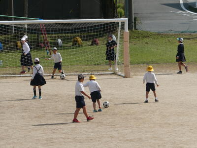 社会体育の天草町サッカークラブの活動がスタートしました。総勢13名です。運動する場を提供して頂き、サッカー好きの子供たちもやる気満々です。