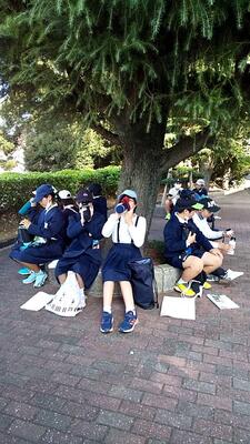 協力しながらグループ活動を楽しみました。1:34pmハウステンボスを出発しました。みんな元気です。