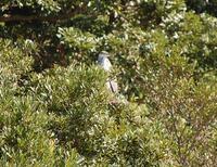 コイコイ池のカワムツを狙ってまたまたアオサギが忍び寄ってきていました。近づいて追っ払うと今度はヤマモモの木の上に止まり、こちらの様子をうかがっています。