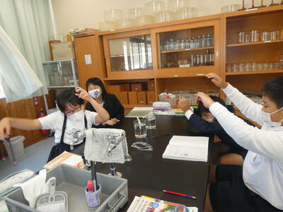 4カ所ほどコケがきれいになくなっていました。「これはきっとカワムツがコケを食べたんだろう。」と思ったのですが、それにしてもこんなに真円に近くなる物でしょうか?不思議です。まさか宇宙人が理科室に・・・。