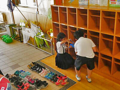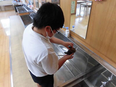 5年生のカメ大好き少年が、「カメの甲羅が汚れているので洗っていいですか?」と尋ねてきました。「お願いします。ついでに甲羅干しもいいかな?」と言うと「分かりました。」と快く引き受け、タワシでゴシゴシ洗ってくれました。カメの”そくらてす”もうれしそうです。