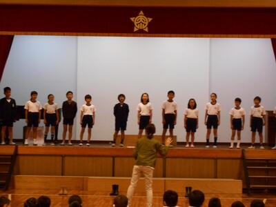その後は子守唄練習をしました。5番(ソロ)を歌う5年生。今週の朝の天小タイムは、学習発表会の全校合唱の練習です。