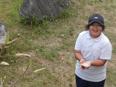 2時間目は生活科で秋を探しに運動場を散策しました。
