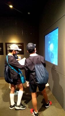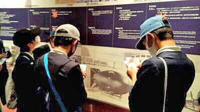 出島資料館を見学しました。子供達が美味しいものを食べて急に大きくなったのではありません。出島のミニチュアの前で写真を撮っています。