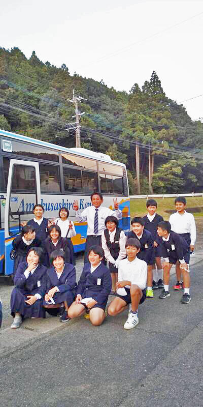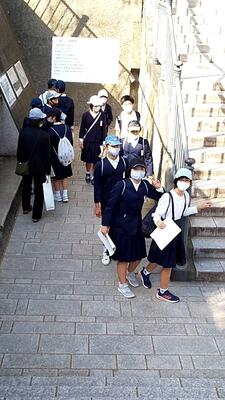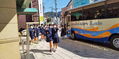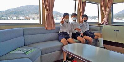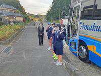本日から明日まで6年生は修学旅行です。今日は、朝7時5分に大江桑鶴をバスが出発し、7時15分に高浜で5人の児童を乗せていきました。検温や手指の消毒もガイドさんにして頂きました。ゆうべ寝られなくてちょっと眠そうな人もいましたが、全員元気にバスに乗り込み、発車しました。天候にも恵まれたので、楽しく有意義な2日間になりますように
