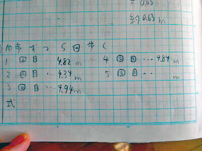 5年生 算数の平均の学習で、自分の歩幅の平均を求めてみました。