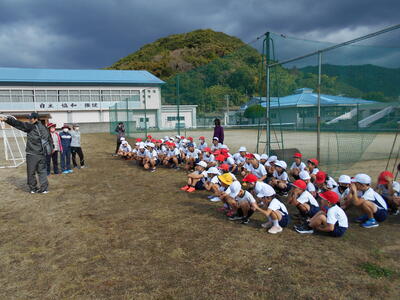 よし、いよいよ走るぞ!と、その前に、低、中、高学年毎に気合いを入れる。