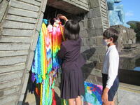 大江教会はキリスト教解禁後、天草で最も早く造られた教会で、現在の建物は昭和8年(1933年)天草への伝道に生涯を捧げたフランス人宣教師ガルニエ神父が地元信者と協力して建立した丘の上に建つロマネスク様式の教会です。もうすぐイルミネーションが始まり、幻想的な教会の姿が夜空に浮かび上がります。大江地区の5・6年生が飾り付けを手伝う予定です。