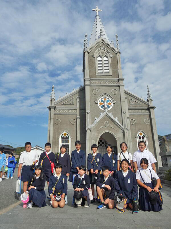今日は、5年生が「世界遺産学」の勉強で河浦町の﨑津集落と天草町の大江教会・ロザリオ館の見学に行きました。