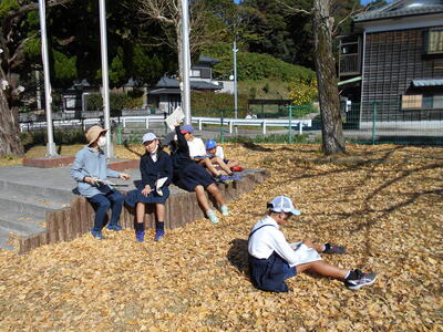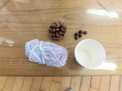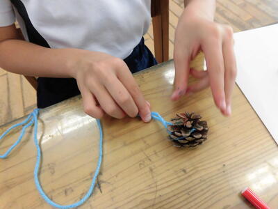 何か作っているようです。生活科で秋のおもちゃを作っているのかな?