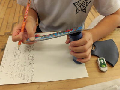 2時間目は1年生の国語「くじらぐも」の研究授業がありました。たくさん手を挙げて意欲的でした。