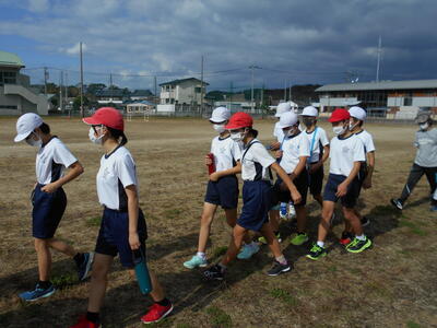 今年度から持久走大会は小中合同となり、コースも今までとは変わるため、今日は全校児童でコースの下見に行きました。コースが変わるので、各学年1位になった人はすべて「新記録」となります。 (*⌒▽⌒*)