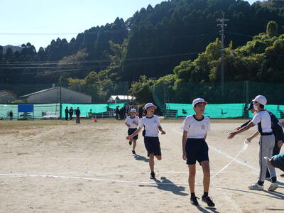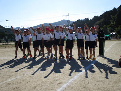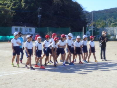 よし、いよいよ走るぞ!と、その前に、低、中、高学年毎に気合いを入れる。