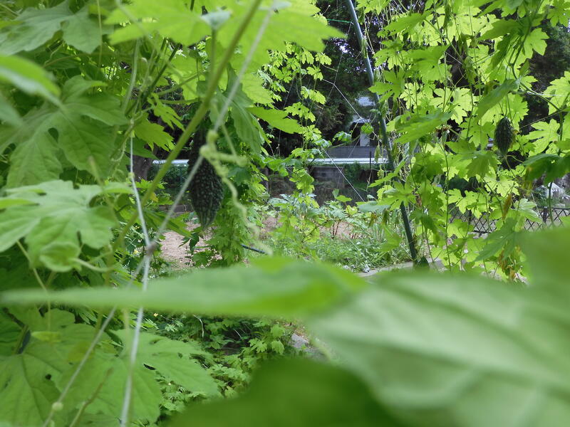 3年生の野菜園では大豆が、4年生の野菜園ではゴーヤ伸びてきています。