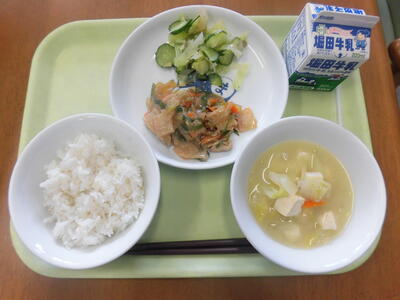 今日の献立は、『ミルクパン、ミネストローネ、きびなごフライ、アーモンドサラダ』でした。しっかりとしたトマト風味のミネストローネ、香ばしい香りのアーモンドサラダはパンとの相性バッチリでした。そして、「きびなご」といえば天草!フライ、天ぷら、塩焼き、お吸い物、刺身、どんな料理にしてもやっぱり故郷の味という感じです。美味しかったです。
