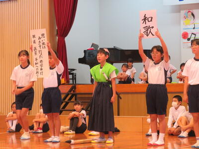 本日は、全児童での天草体験学習の発表会と天草カルタ大会を重ねた会を実施しました。