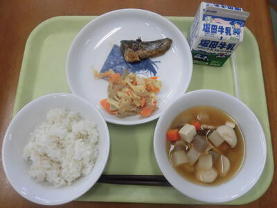 今日の献立は、『つぼん汁、いわしの梅煮、たけのこのひこずり』でした。「つぼん、ひこずり」など聞き慣れない言葉ですが、人吉・球磨の郷土料理だそうです。つぼん汁は、お正月や祭りなどで食べられていて、祝い事には欠かせない料理だそうです。「ひこずり」とは、こする・いためるという意味があるそうです。たけのこのひこずりは、みそ味で、甘い味付けでご飯とよく合いました。いわしの梅煮もとても美味しくて、たれをご飯にかけて食べている子もいました。ご飯とよく合うメニューでした。