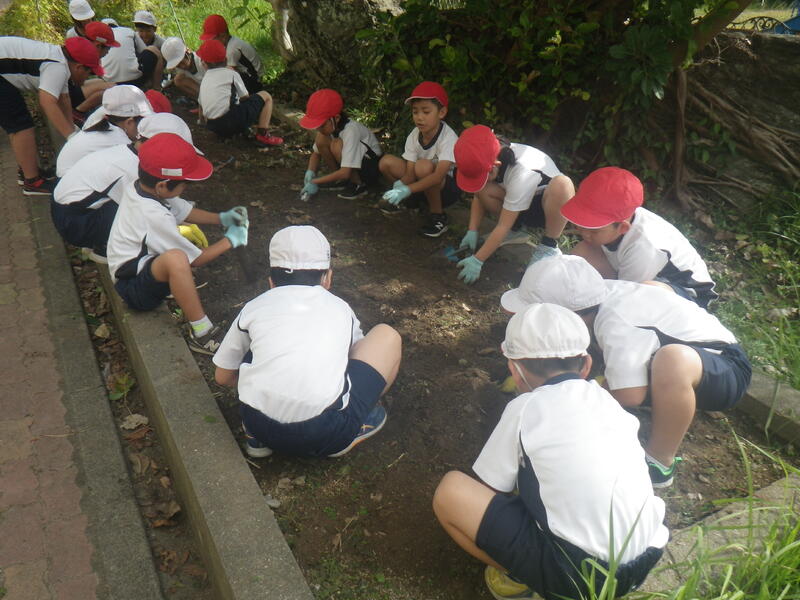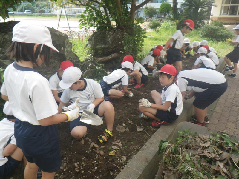 3・4時間目の生活科で、1・2年生は、冬野菜の大根などを植えました。