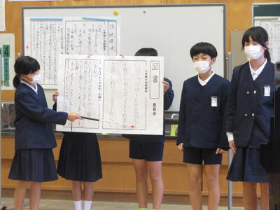 この日は、まず、中学校の授業を参観させていただきました。真剣な態度で学ぶ中学生の姿に感心しました。その後の協議会の中では、熱心な協議をしていただきました。先日の研究発表会での児童・生徒の成長した姿を心から喜んでいただきました。天草小中の児童生徒のことを心から愛し、成長を楽しみにしていただいていることを感じ、身が引き締まる思いでした。たくさんの方々に見守られていることに深く感謝しながら、今後も努力していきたいと思います。