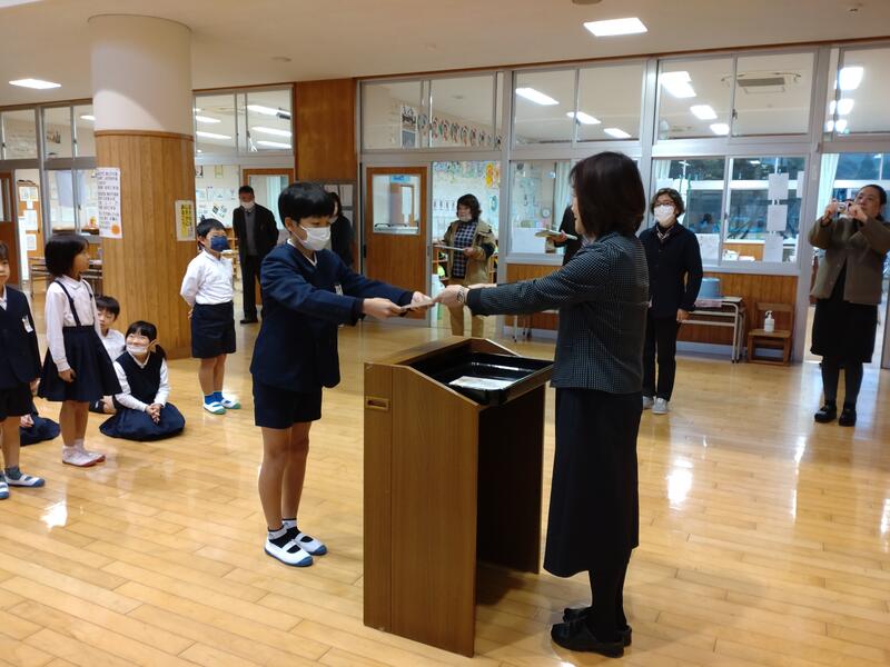 今日は、天草郡市文化展をはじめ毛筆・硬筆・描画を出品した作品展入賞者の表彰式を行いました。素晴らしい作品に仕上げたことに対しての受賞は、本当に誇らしいことです。それから校内では、100冊以上の本を読んだ人の表彰に加え多読書の表彰、そして漢字・計算大会でのダブル満点賞の表彰を行いました。こつこつと努力した児童の皆さんの頑張りが光る2学期でした。