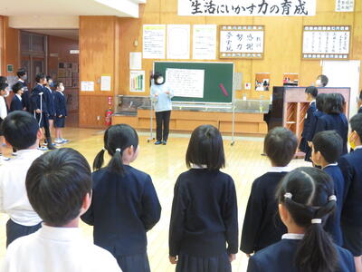 今学期最後の歌声タイムでした。歌声も心もひとつ、美しい響きで歌っています。低学年の児童から美しい声を目指し歌うことができます。今日は4年生3名が全校児童の前で「きよしこの夜」を歌ってくれました。声だけでなく音程がよくて、聴いた児童にとっても癒やし、そして学びの時間となりました。