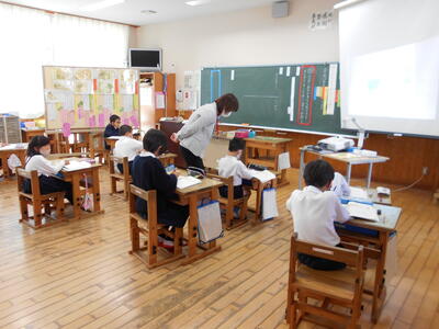 本日は、葛籠貫さんによる5・6年生への読み聞かせでした。本の題名は「へいわって すてきだね 詩:安里有生(あざとゆうき)画:長谷川義史」でした。折しも6年生が、先週長崎への修学旅行で平和学習を行ったところでしたので、そのことにご配慮頂き、本を選んでくださいました。感想発表では、たくさんの手が挙がり、6年生が修学旅行で学んだことと関連させ、「今が平和であることに感謝し、これからも家族を大切にしたいです。」と感想を発表してくれました。