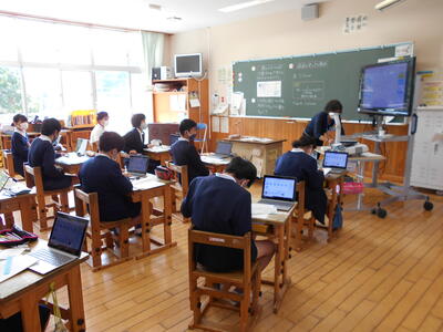 5,6時間目は、5年生が理科の「もののとけ方」の実験をしました。水に食塩を溶かしたとき、水溶液の重さは溶かす前と後では変わるのか実験をしました。予想では水溶液の重さは「水+塩の重さになる」がほとんどでしたが、「ものをとかした水溶液の重さは、もとの水の重さと同じである」と考えた人も何人かいました。つまり水50gに食塩5gを溶かしたときの水溶液の重さは55gになるか50gのままなのかということです。