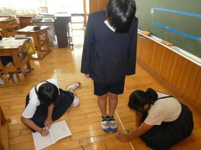 5年生 算数の平均の学習で、自分の歩幅の平均を求めてみました。
