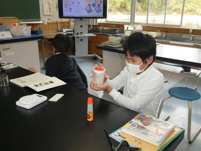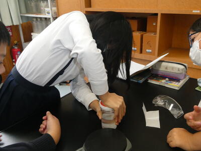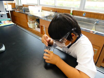 質量保存の法則を小学校5年生で実験を通して学びます。こうした「実感を伴う理解」によって知識や技能の確実な定着を図ることを目指しています。
