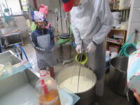 今日は朝から3年生が校外学習に行きました。まずは、福連木豆腐の見学です。