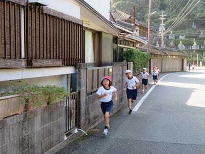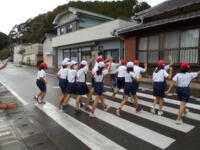 3時間目は、11月27日(土)の持久走大会に向けた練習をしました。雨雲レーダーで確認しながら、雨の合間をぬっての実施となりました。雨で路面が濡れているので歩いたり、軽く走ったりする程度にしました。