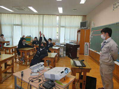今日は市役所の水産振興課から、5年生に「お魚給食出前講座」をしていただきました。