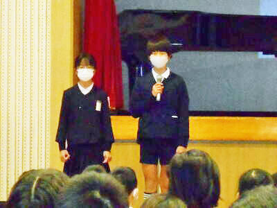 今日の天小タイムは、児童会総会でした。各委員会の6年生が2学期の活動報告をしました。