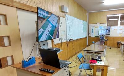 なお、密を避ける為に先生方には、2階の音楽室の様子を1階のランチルームで2台のモニターによる参観をして頂きました。