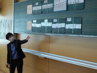 めあては、【「福連木の子守唄」風のオリジナルの子守唄を完成させ、交流しよう。】です。グループに分かれ、次の3つの条件で自分たちがイメージした曲調に会った旋律を作って発表し、感想を発表しあって交流しました。条件①:ドレミソラの5音音階を使う。条件②:ラで始まってラで終わる。条件③:3拍子になるようにする。どのグループも曲を完成させ、発表することができました。完成した旋律は、どのグループのものも守子の淋しくてつらい気持ちが表れており、悲しいけど優しい感じに仕上がりました。