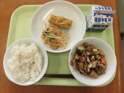 今日の献立は『麦ご飯、厚揚げのうま煮、ちくわと野菜のごま和え』でした。昨日まで修学旅行に行っていた6年生は、きっと豪華な食事をたくさん食べてきたことと思います。でも、好きな物をたくさん食べるのもいいけど、栄養のバランスのとれた身体に優しい給食のよさもきっと感じたのではないでしょうか。今日も美味しかったです。