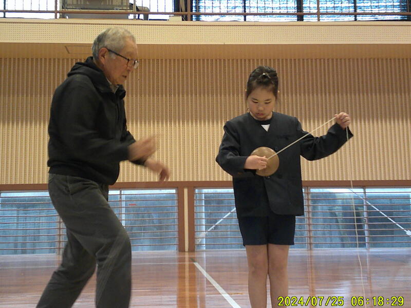 竹馬や竹で作った鉄砲での的当て、けん玉、竹馬などいろいろな遊びを体験させてもらいました。お年寄りの方々の技にびっくりしました。