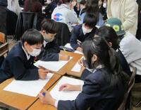今津小・教良木小・阿村小の3校の4年生が集まり、崇城大学デザイン科の学生の皆さんと一緒に、新しい学校の校章デザインに向けたヒアリングを行いました。