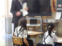 はじめに、市役所の方から「なぜ4年生に考えてもらうのか」「統合後の最上級生として、新しい学校を引っ張っていってほしい」という思いをお話しいただき、子どもたちも真剣な表情で耳を傾けていました。