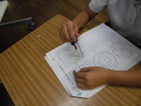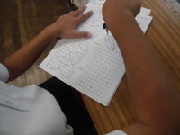 3年生は算数の授業で、コンパスを使って円をかく学習に取り組んでいます。最初はコンパスの使い方に慣れず、きれいな円をかくことが難しかったのですが、コツをつかむとだんだん上手にかけるようになりました。子どもたちはその後、さまざまな模様にも挑戦していました。